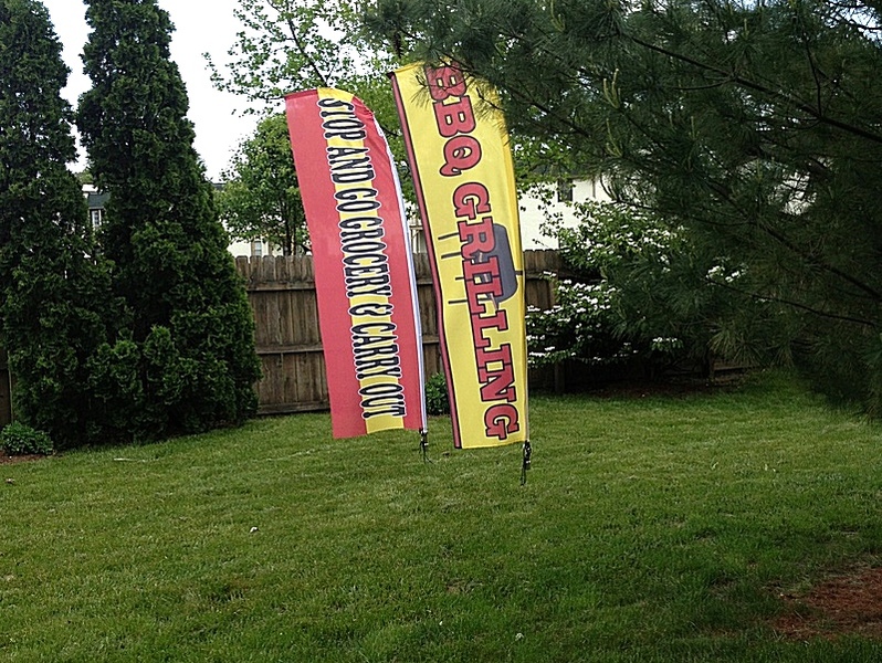 The concave shape bowl flags are available in five colors red, green, black, white and yellow. Flags without any graphic prints start as low as $54.00.Any graphic prints requested is $90.00. Add a medium fiberglass pole, rotating ground stake, carrying case included, total price before shipping $240.00 one side. Reg.$273.15. You save $33.15.