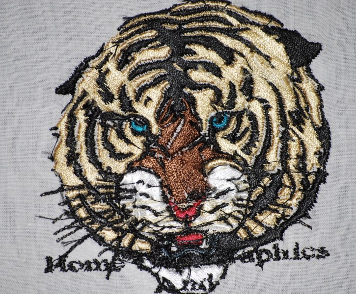 This custom design Tirger can be stitched on almost any material that you select. This "Tiger" comes in a bright yellow satin color trim in flat black that will match almost decor.We not only have "Tigers" but many other images customers may choose from.The "Tiger" comes in ("4.50"x3.50")to(5.50"x6.50").If customers choose to place this embroidery on our Polo shirts the coat $75.00 for first time set up fee and the cost of the Polo shirt $35.53 total$110.53.Buy five the cost $177.65.