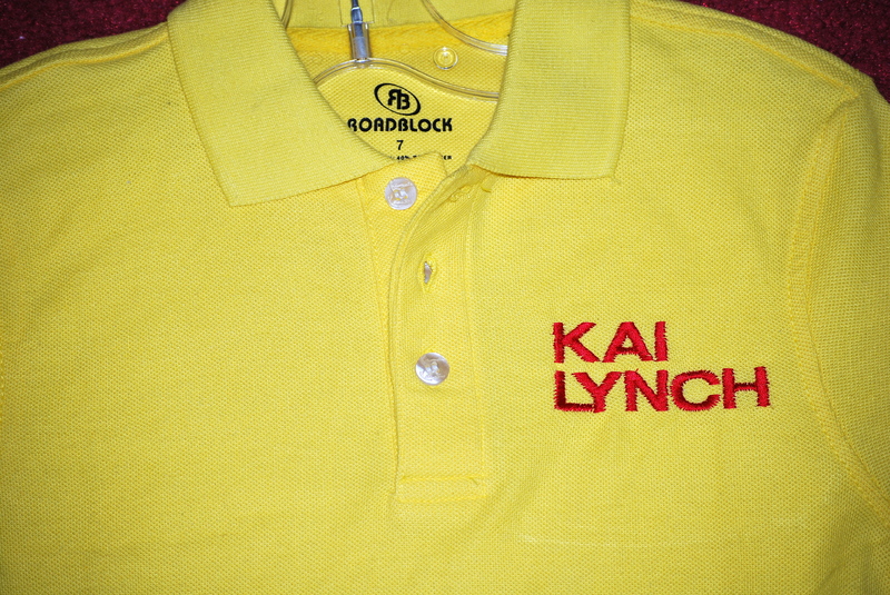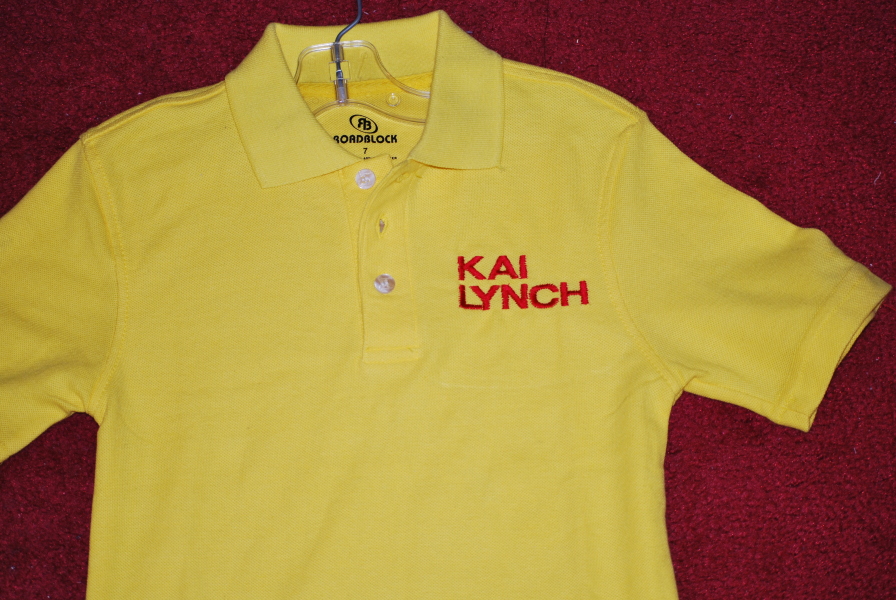 We also have custom designed embroidery for kids Polo designed shirts.The starting price $33.90.Customers will be charged a one time set up fee of $75.00.Customers may chooes to order one Polo shirt at a total cost $109.90 or purchase five Polo shirts at a cost of $169.50 plus the one time set up fee of $75.00.